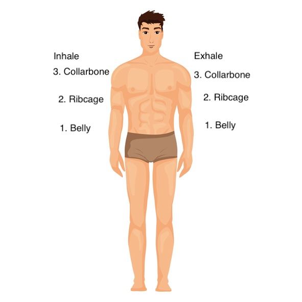 This type of breathing takes some practice, since it asks us to breathe a lot deeper and at a different rhythm than we would normally.